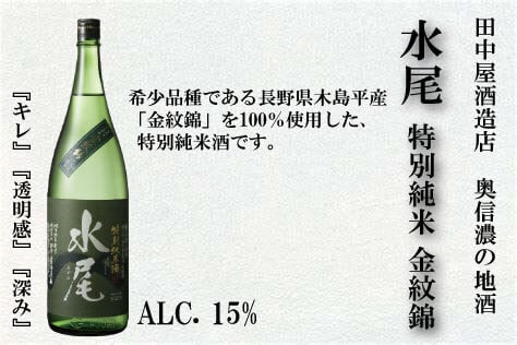 水尾 特別純米 金紋錦 1.8L 長野県/田中屋酒造店/奥信濃のお酒/純米/特別純米酒